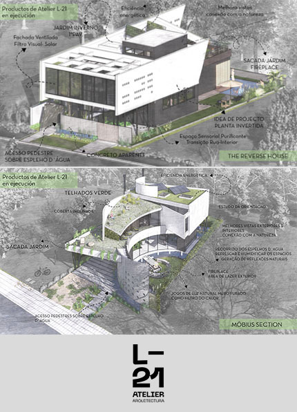 Enfatizamos a arquitetura bioclimática, o design inovador e a adaptação ao meio ambiente.